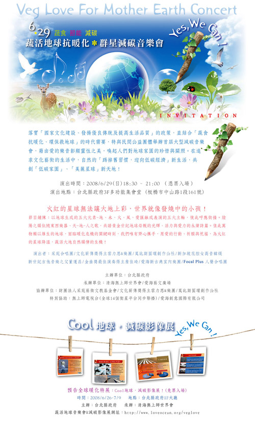 好資訊與你分享喲!!免費又能做公益的音樂會-蔬活地球抗暖化 群星減碳音樂會