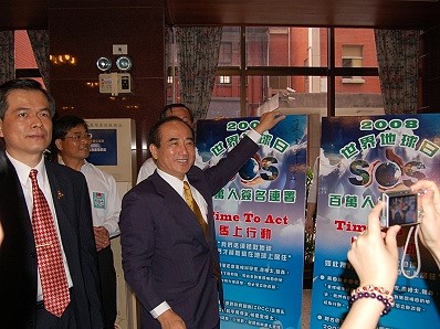 立委邀請在場所有人一起簽署響應蔬食抗暖化