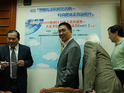 現場李新議員還建議將4/22訂為台灣的素食日,請大家以後4/22全民都來吃素一天!