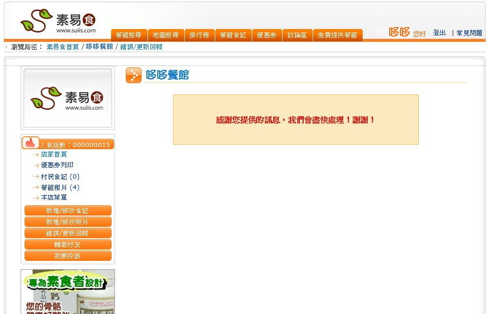 ~素食餐廳資料維護~需要大家共同努力~