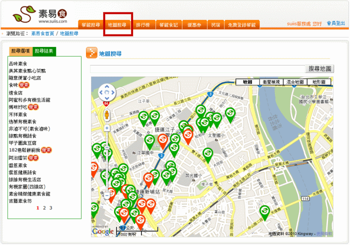 STEP 1.進入素易食,點選上方的「地圖搜尋」