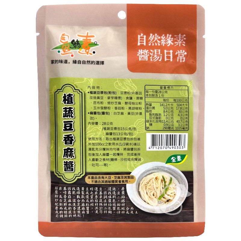 《自然緣素》植蔬豆香麻醬(28g/包)~香濃麻醬 × 植蔬豆漿包 28