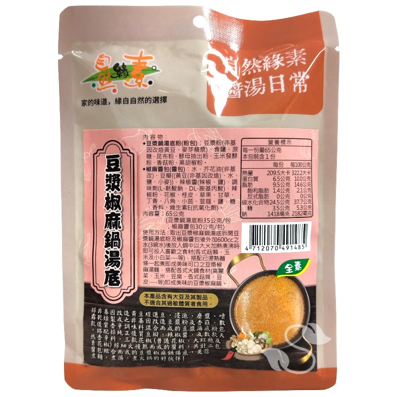 《自然緣素》豆漿椒麻鍋湯底(65g/包)~濃郁豆香 × 爽麻香辣 55